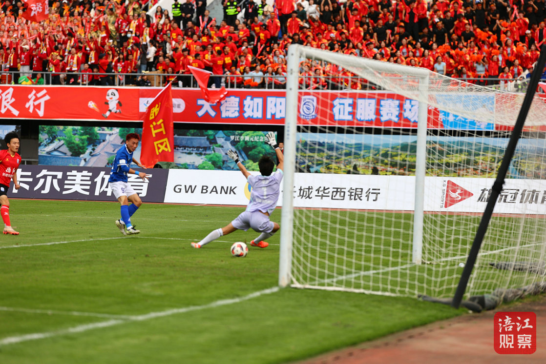 比賽第42分鐘,德陽(yáng)隊(duì)在禁區(qū)踢進(jìn)一球,將比分追平。
