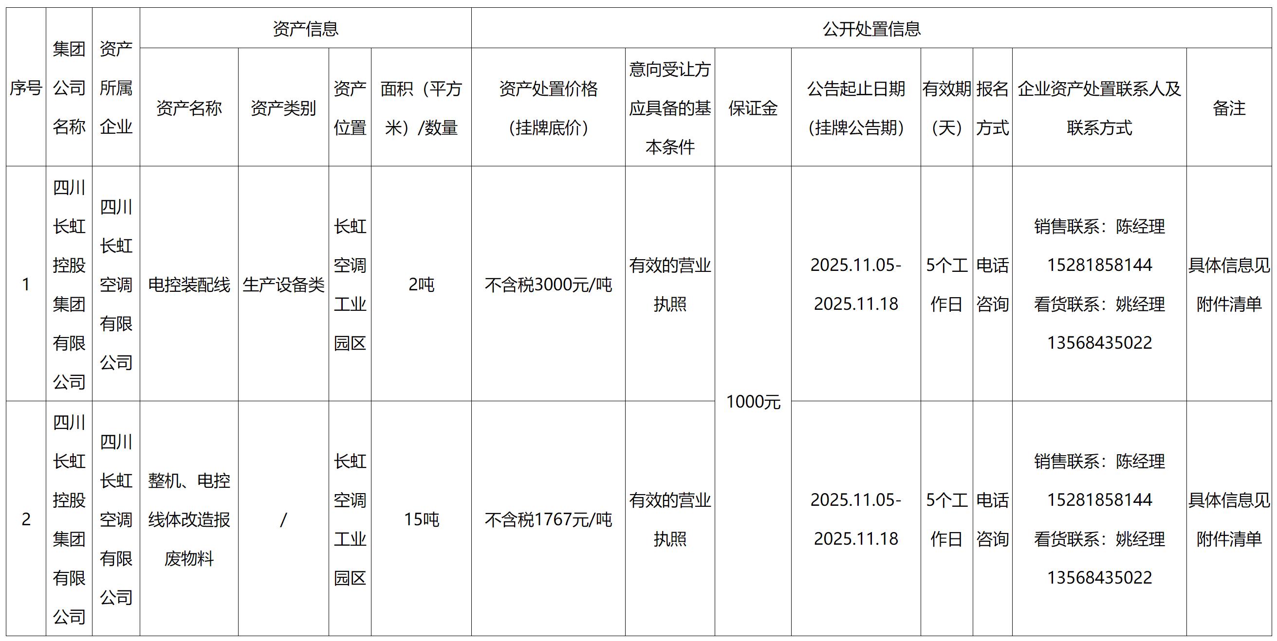 四川長(zhǎng)虹空調(diào)有限公司資產(chǎn)處置公告