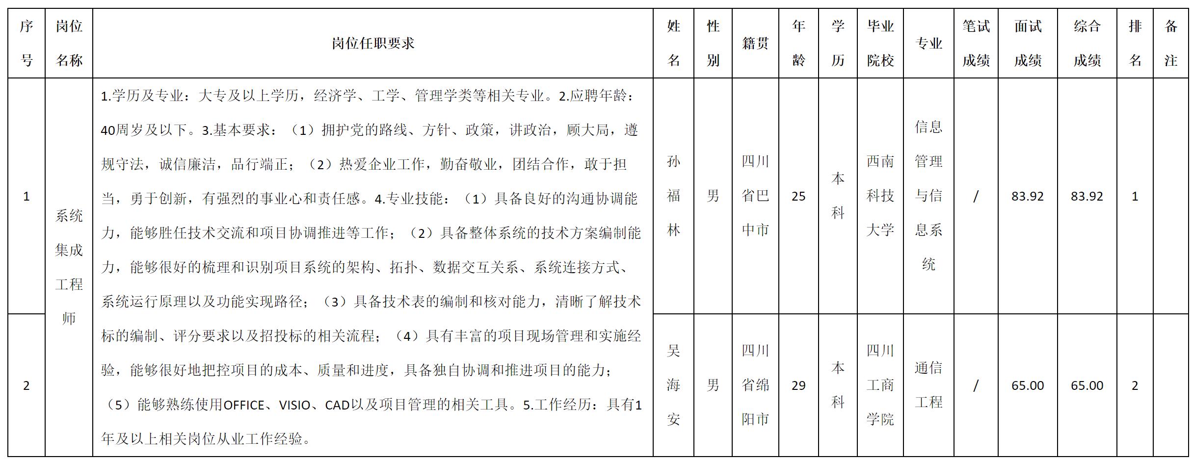根據四川九強通信科技有限公司發布的招聘公告及招聘相關規定,現將測試成績予以公示。