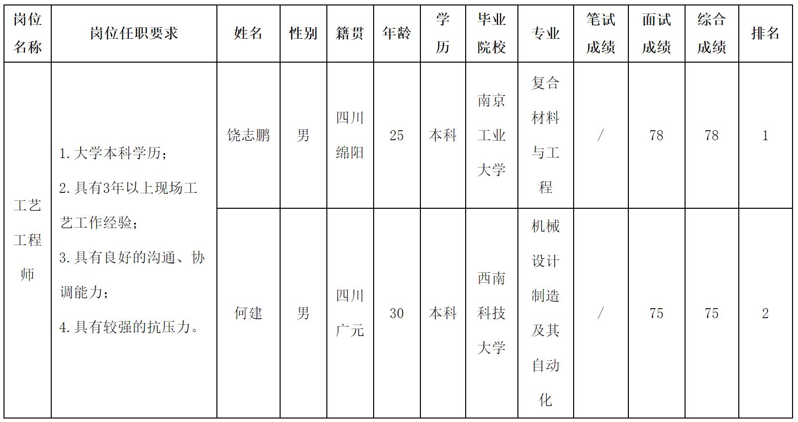 根據四川華豐科技股份有限公司發布的招聘公告及招聘相關規定,現將測試成績予以公示。