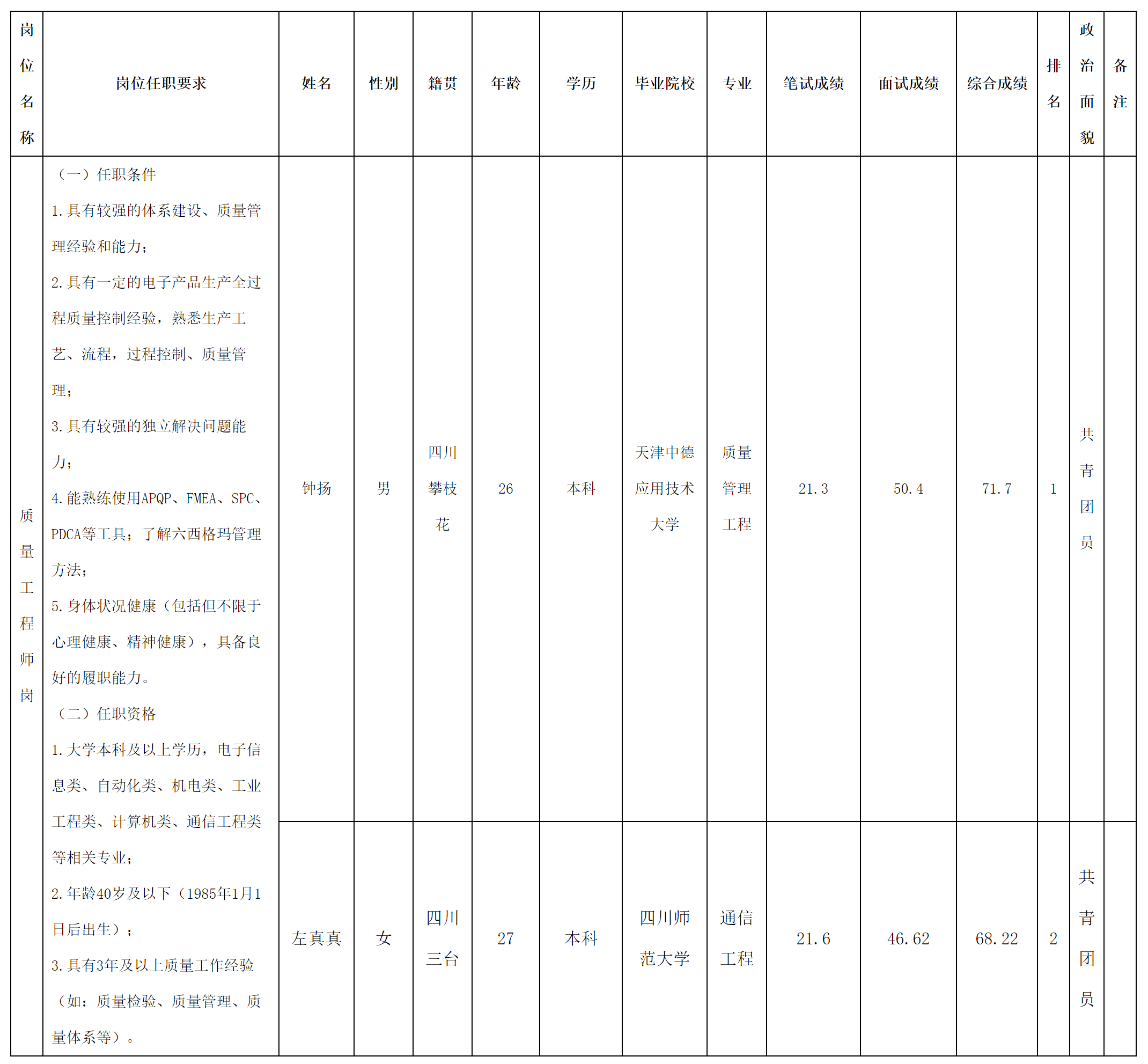 根據綿陽燃氣集團發布的招聘公告及招聘相關規定,經筆試、面試等程序,現將綿陽能創科技有限責任公司質量工程師崗位筆試、面試成績予以公示。
