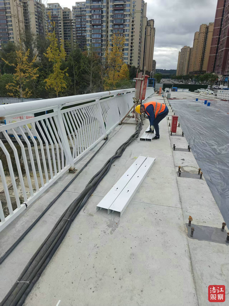 11月11日,記者在現場看到,十多名工人正在進行橋面鋪裝、引橋段施工等收尾工作。調元大橋橫跨安昌河,全長約267米,橋寬29米,是連接河西片區與河東新區的重要通道。大橋采用獨塔單索面無背索斜拉橋設計,橋塔高聳如鶴頸,拉索如翼,勾勒出“云鶴飛揚”的靈動畫卷。
