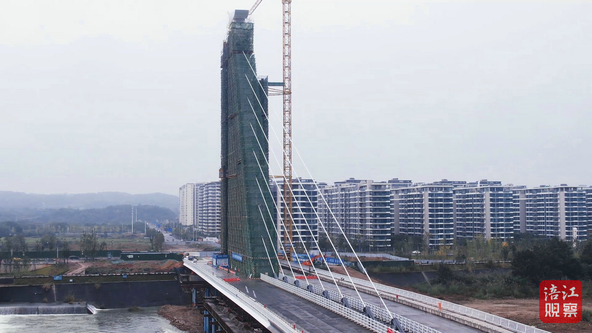 “如今項目進度已達95%,預計年底前通車。”調元大橋項目建設負責人王陽表示,這個“云鶴”的設計不只是為了好看,它就像橋塔的“單臂”挑起整個主跨,姿態輕盈,但內部需要極強的結構力量來平衡。這種無背索設計對塔柱的傾斜角度、基礎承載以及拉索的張拉力要求都非常高,是力學與美學的完美融合。