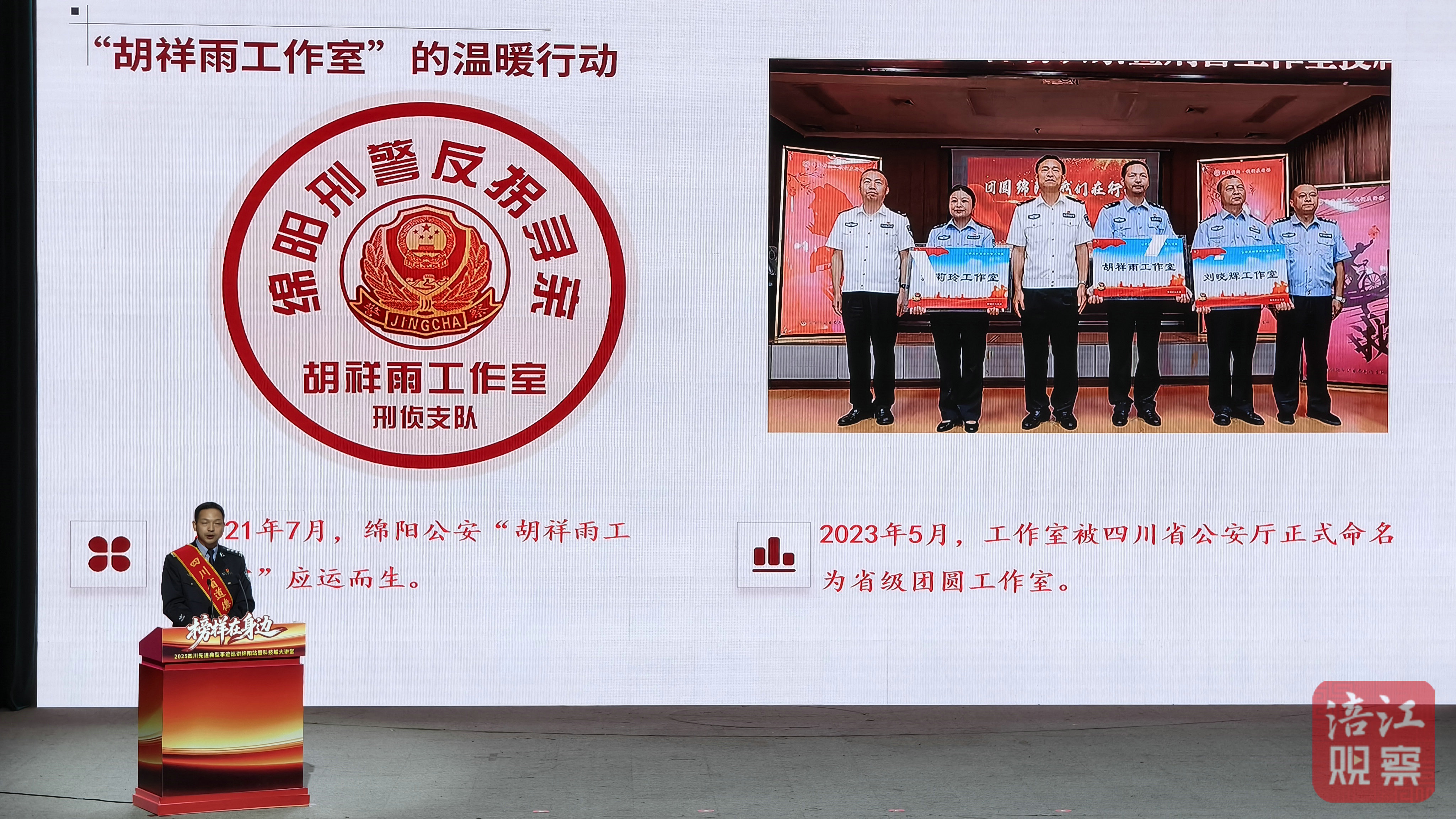 “每面錦旗背后,都是一個(gè)離散家庭的重新?lián)肀А?rdquo;綿陽(yáng)市公安局刑偵支隊(duì)一大隊(duì)教導(dǎo)員胡祥雨的話(huà)語(yǔ)質(zhì)樸深情。26年從警生涯中,他從警犬訓(xùn)導(dǎo)員轉(zhuǎn)變?yōu)槿罕娍谥?ldquo;有溫度的胡叔叔”,6年間承接全國(guó)尋親求助5萬(wàn)余次,促成792個(gè)家庭團(tuán)圓。當(dāng)他念出被拐者“胡叔叔,我想見(jiàn)我媽”的微信留言時(shí),臺(tái)下不少觀眾悄悄擦拭眼角。