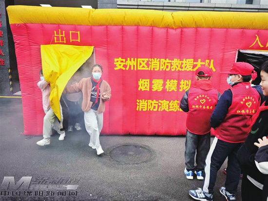學(xué)生在安州區(qū)消防救援大隊(duì)沉浸式學(xué)習(xí)安全技能。