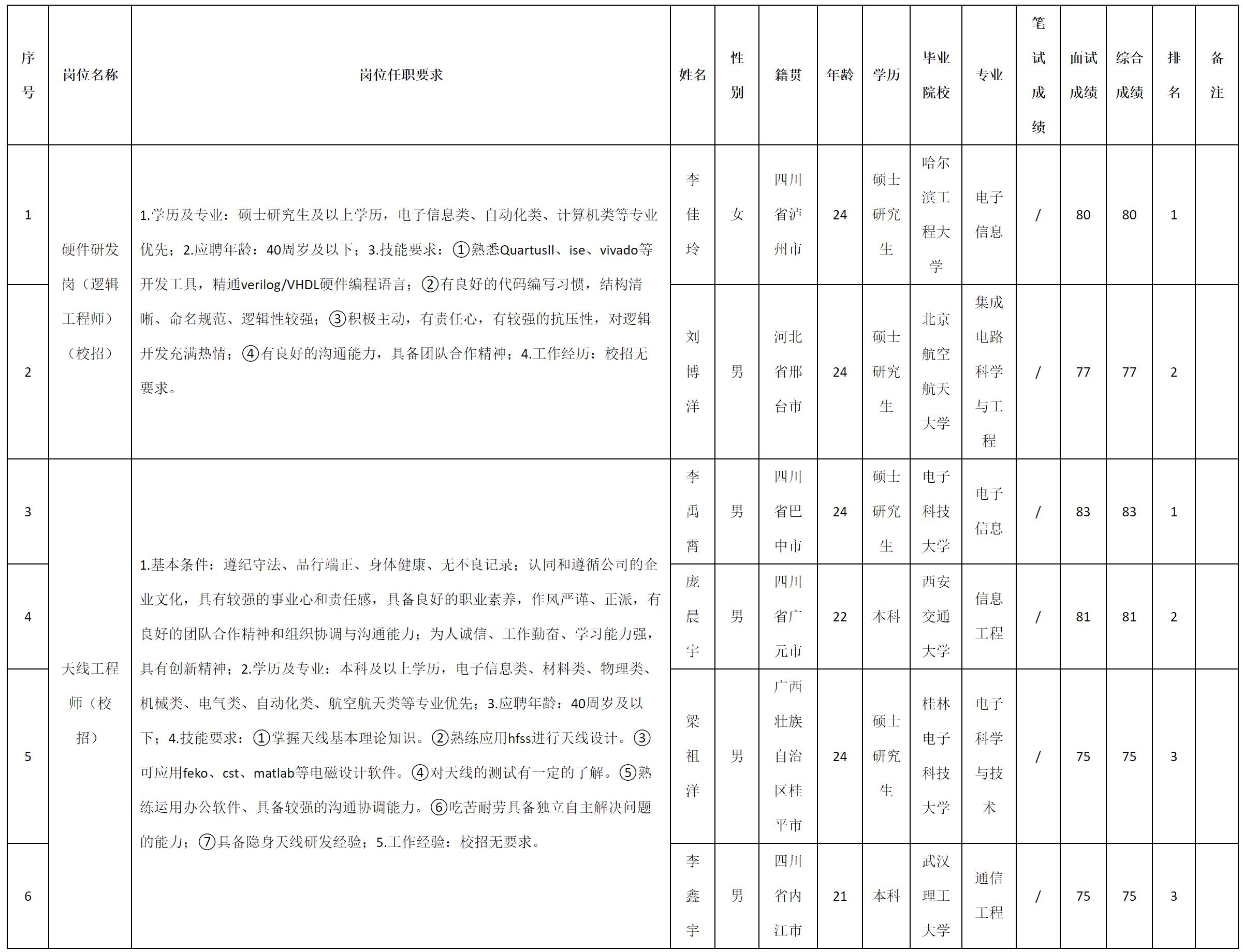 根據四川九洲電器集團有限責任公司發布的招聘公告及招聘相關規定,現將測試成績予以公示。