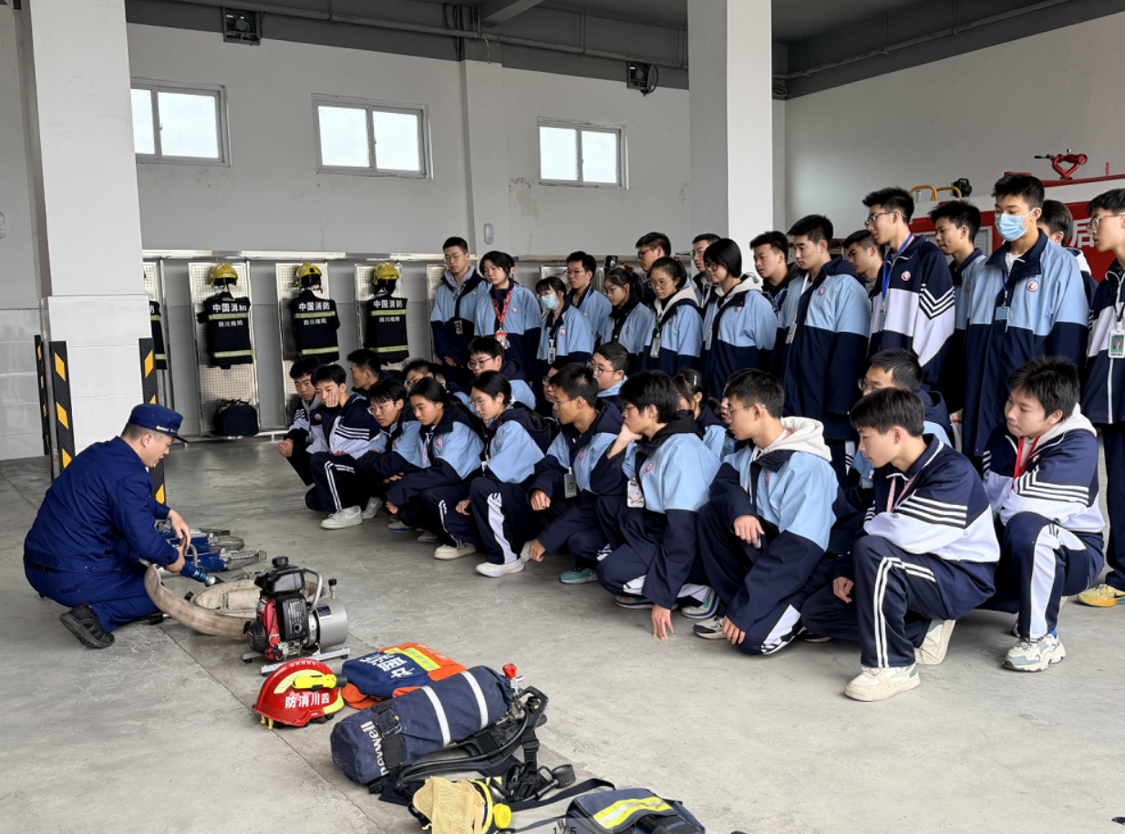 為進一步深化消防安全學習效果,該校還遴選各年級學生代表走進武都鎮(zhèn)消防站,開展“零距離”沉浸式學習體驗活動。同學們聆聽了各種消防器材的介紹,并親手試穿厚重的消防戰(zhàn)斗服,親身體驗消防員工作的艱辛與偉大,更體會到“赴湯蹈火、竭誠為民”的消防職業(yè)擔當。最后,消防員帶領學生們參觀了消防車輛、宿舍、榮譽室等場所,整潔的內(nèi)務、鮮紅的錦旗無聲地述說著這支隊伍鐵的紀律和崇高的榮譽感,讓同學們對消防事業(yè)有了更直觀的認識,心中播下了敬畏生命、崇尚英雄的種子。