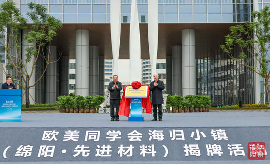 上午10時(shí)40分許,丁仲禮、普布頓珠共同為歐美同學(xué)會(huì)海歸小鎮(zhèn)(綿陽·先進(jìn)材料)揭牌。