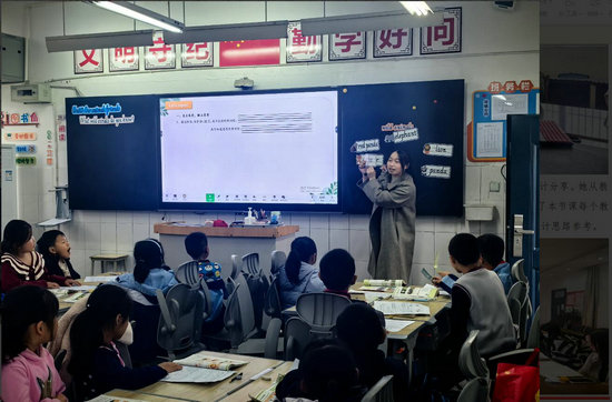 活動伊始,五里路小學顏聰老師在仙鶴小學執教《Our animal friends》part B研討課。課堂上,顏老師充分調動學生積極性,學生熱情高漲、踴躍舉手,課堂互動頻繁,氛圍熱烈,高效達成單元教學目標。