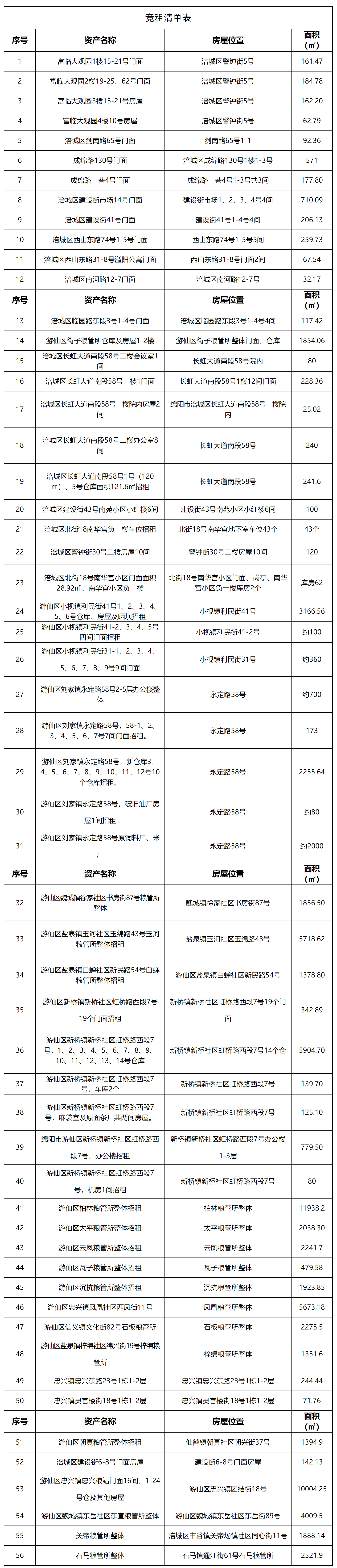 綿陽市眾一糧油有限公司現有門面、倉庫、住房及其他資產面向社會公開競租(詳見競租清單)
