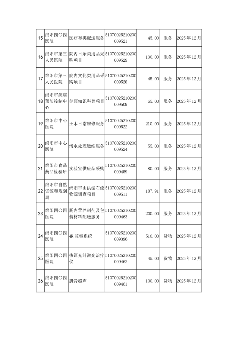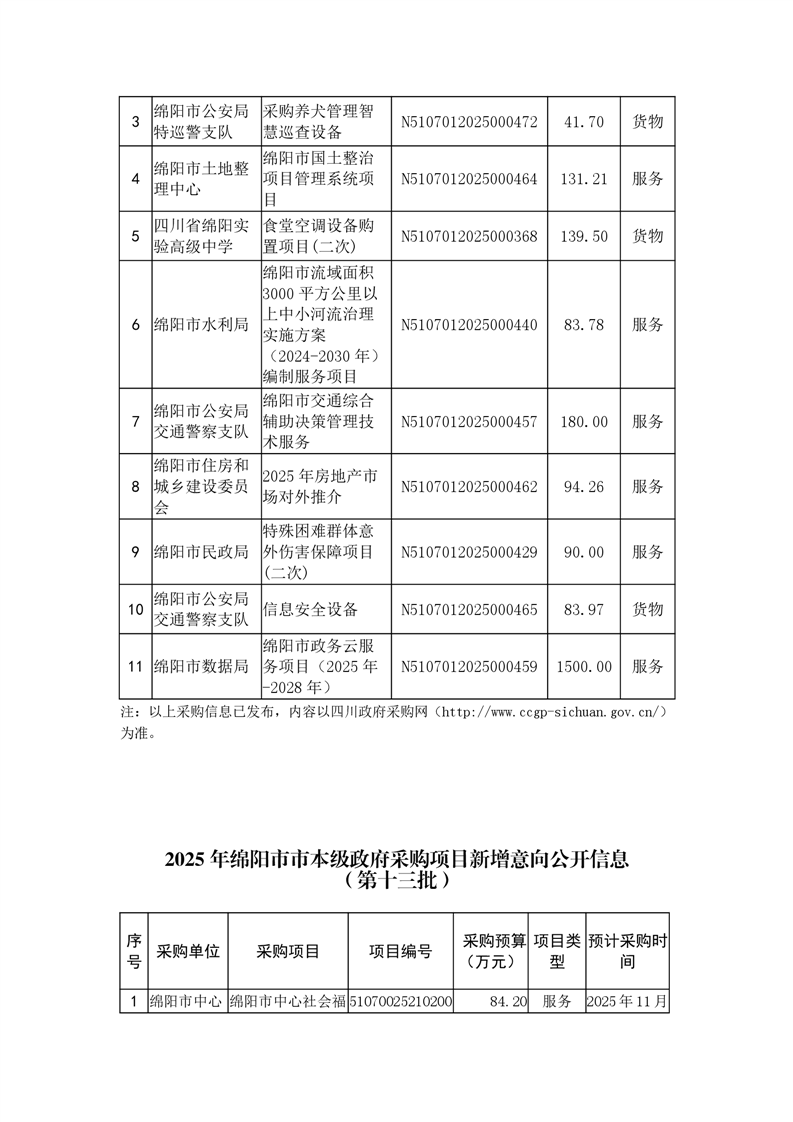 100個政府采購項目的“機會清單” 出爐!(2025年第十三批)綿陽市市本級政府采購項目信息動態(2025年第十三波)