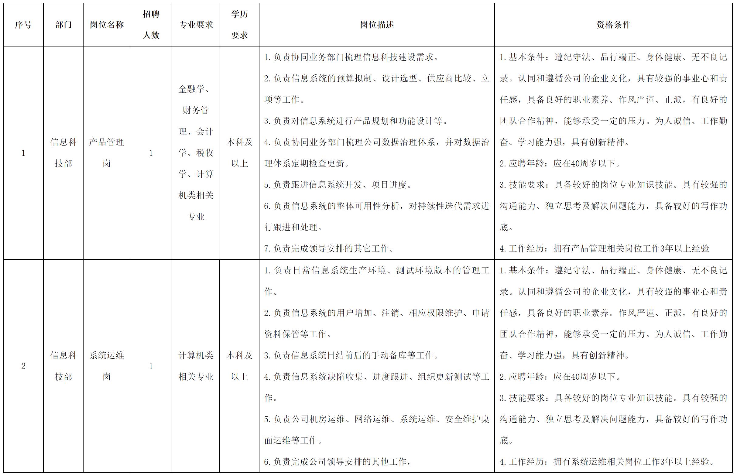 現因經營發展需要,公開招聘產品管理崗、系統運維崗各1名: