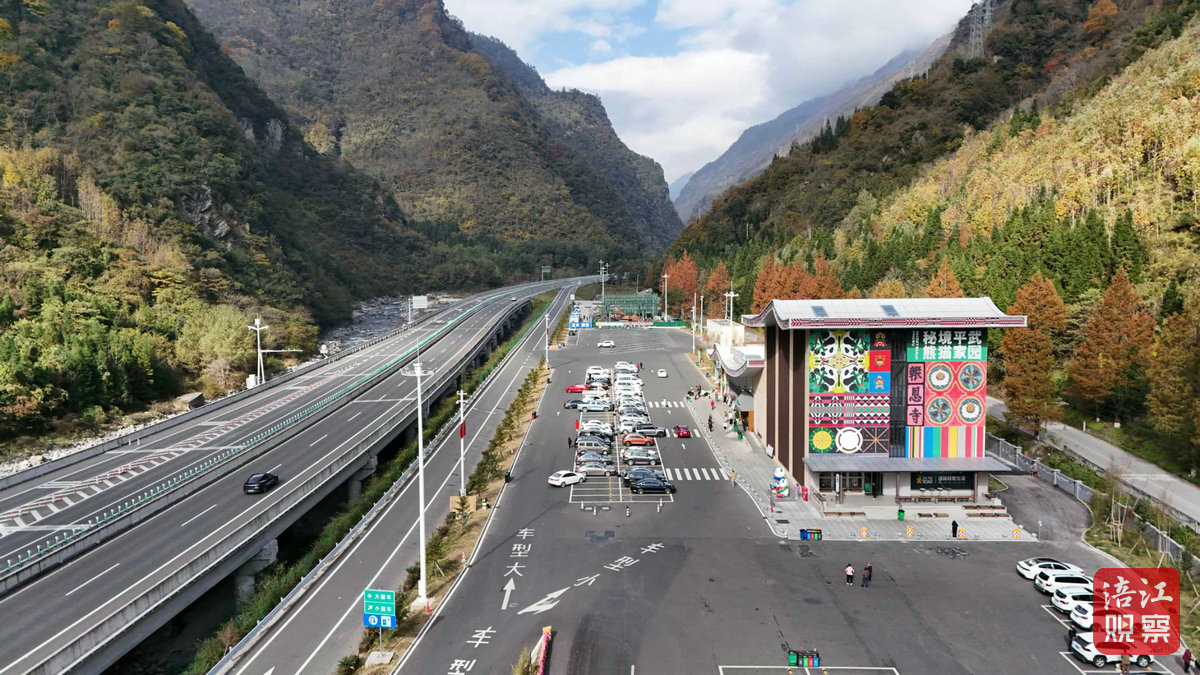 木座服務區是總占地51.9畝的雙側建筑群,打破了傳統服務區的功能邊界,白馬文化元素符號在建筑外觀與內飾中隨處可見;中蜂樂園的景觀小品生動講述著當地生態故事;報恩寺數字文化長廊則用現代技術延續著古剎的千年文脈。