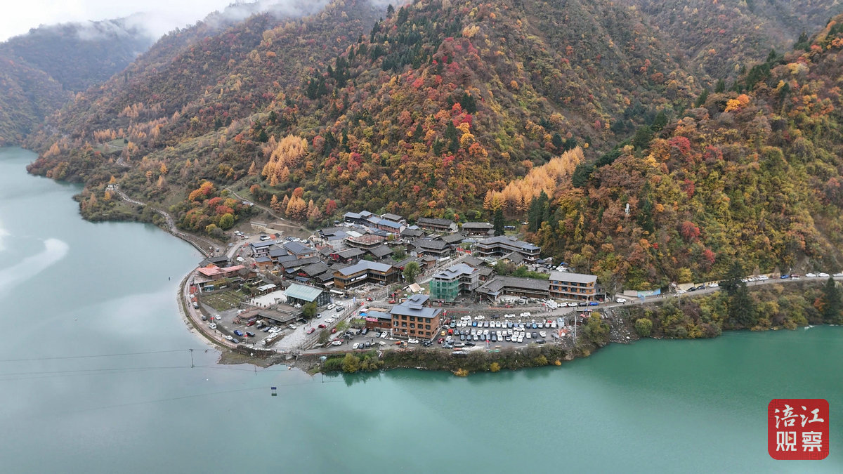 古寨里,白馬藏族居民身著傳統服飾,熱情招呼來客。扒昔加古寨擁有千年歷史,是白馬地區最古老的山寨之一。整座古寨依山而建,高低錯落的石基木屋與古老吊腳樓相映成趣,全木結構的建筑透著古樸韻味,木門、木窗、木墻皆保留著原始風貌,屋脊上還佇立白色雄雞圖騰。