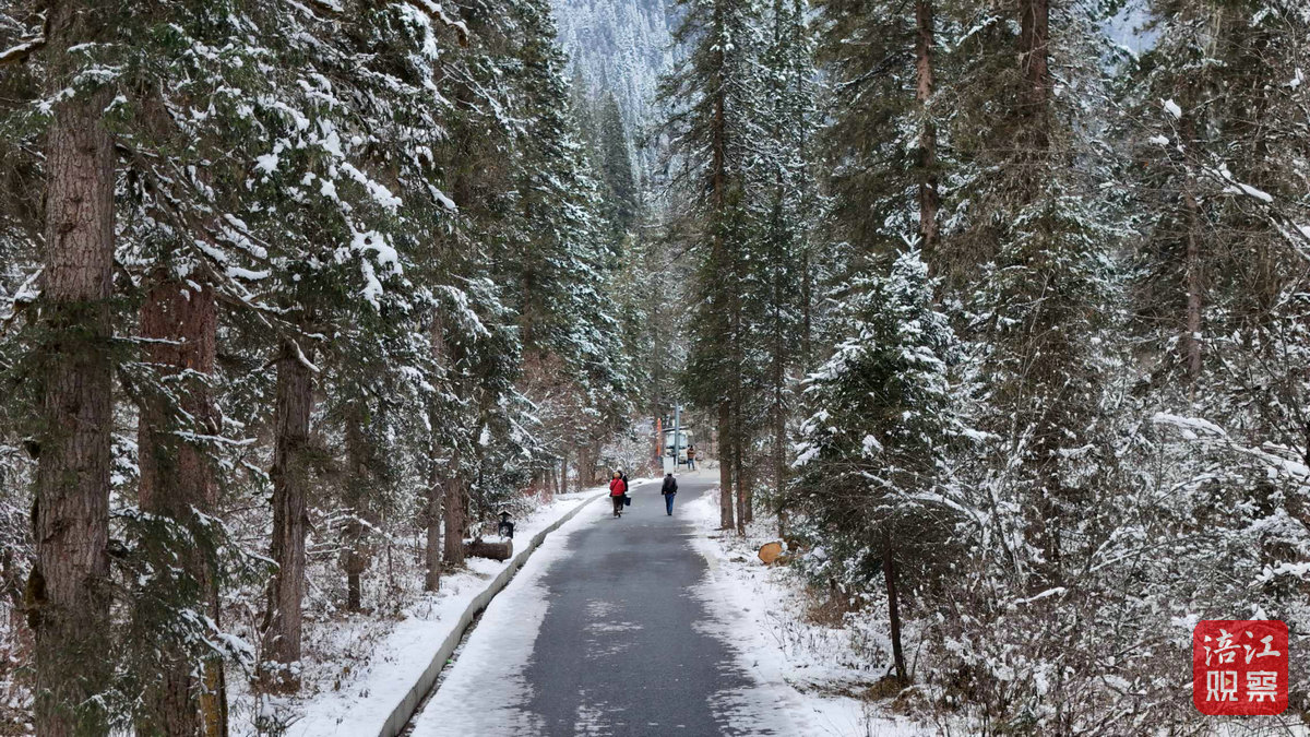 在大熊貓國家公園王朗片區,記者一行先后來到牧羊場和甘海子,經過前一天的降雪,王朗已然成為一片潔白的冰雪世界。