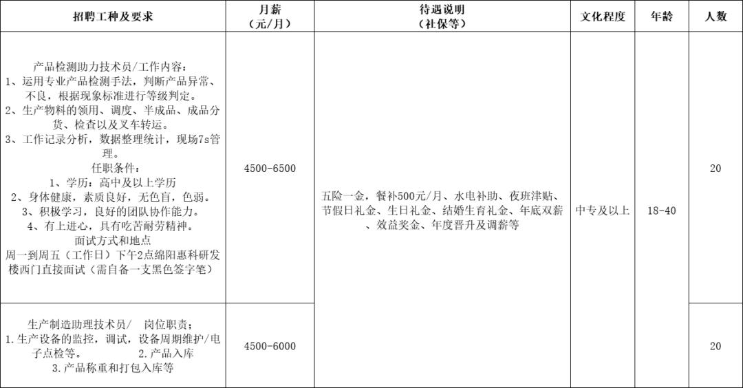 待遇:試用期滿享受社保、工齡補貼、滿勤獎、享受法規帶薪休假、部門聚餐、節日禮品、戶外團建、優美的辦公環境、人性化的工作氛圍、廣闊的發展空間。