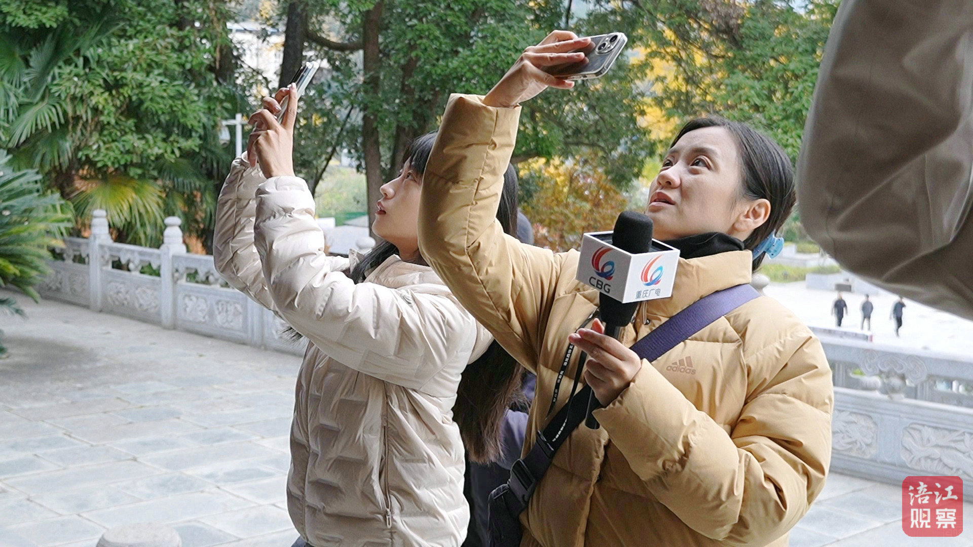 媒體記者們的鏡頭追隨著彩繪壁畫的細膩筆觸、轉輪經藏的古樸紋路緩緩移動,筆端記錄著千手觀音的莊嚴神態與斗拱的精巧構造,不時向講解人員詢問古建筑保護細節與文旅融合路徑,在飛檐風鈴的清響中,探尋這座大明遺珠的過往與新生。