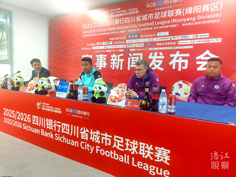 11月22日,2025/2026四川銀行四川省城市足球聯(lián)賽(綿陽賽區(qū))收官之戰(zhàn)賽前新聞發(fā)布會在三臺縣體育場新聞發(fā)布廳舉行。綿陽九洲長虹隊、阿壩州雪山雄鷹隊的主教練及隊員出席并接受媒體采訪,雙方圍繞賽前準備情況以及球員狀態(tài)進行了分享。