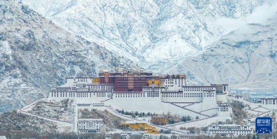 這是2月16日拍攝的布達拉宮雪景(無人機照片)。