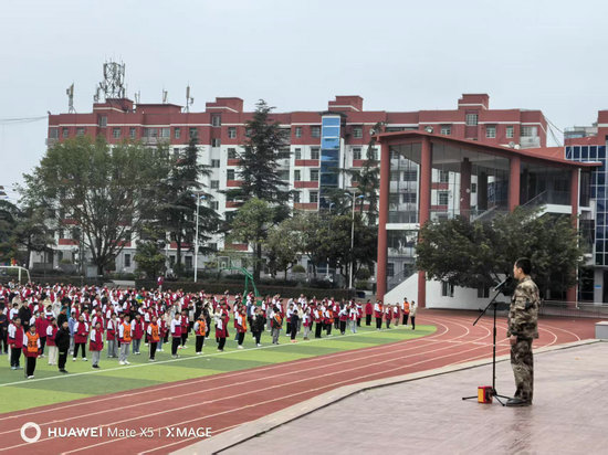 上午10時10分,演練正式啟動。首先該校安全處主任吳蘭通過教室廣播對全體師生進行了活動安全提示,同時,當堂科任教師全程在班內組織學生明確疏散路線、避險要點及注意事項,確保每位學生熟悉流程。10時15分,警報拉響,應急疏散環節開始。各班學生在教師的指引下,彎腰低身、捂住口鼻,按照預定路線快速有序撤離。教學樓各樓層及樓道轉角處,科任教師提前就位值守,密切關注學生動態,及時處置可能發生的突發狀況。僅用時4分鐘,全校4000余名師生便全部安全抵達運動場指定區域集合。