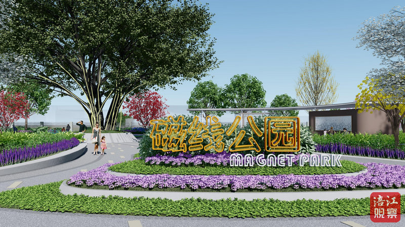 這里正在打造的火炬西街“磁線公園”,占地5600平方米,包含全民運動、休閑科普、健康花園等區域,設計以大葉榕為軸心,以“磁感線”為空間設計語言,將科技磁場表現形式與城市生態功能、空間形態融合起來。現場圍繞著大榕樹設計了一處廣場,在廣場周邊布置新建綠地、衛生間、管理用房等設施,形成“科技磁場+生態綠芯”的獨特景觀。