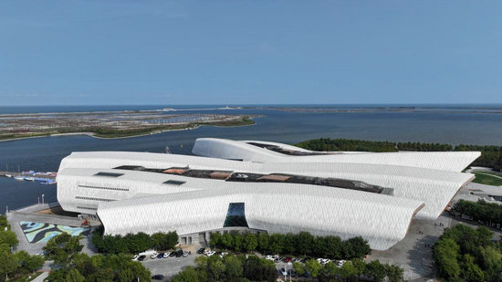 在中新天津生態(tài)城拍攝的國家海洋博物館一景(無人機照片)。新華社記者李然 攝