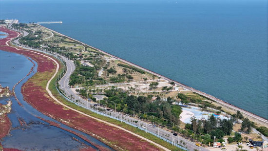 這里是中國與新加坡兩國政府間重大合作項目中新天津生態(tài)城,2008年開工建設。經(jīng)過多年努力,曾經(jīng)三分之一鹽堿荒灘、三分之一廢棄鹽田、三分之一污染水面的荒蕪之地,已經(jīng)成為“一城多園步步景”的生態(tài)新城。近年來,依托豐富的海洋文旅資源和城市綠洲,中新天津生態(tài)城構建起了“海博文旅圈”,并打造“花園里的體育”場景,激發(fā)文旅新潛力。