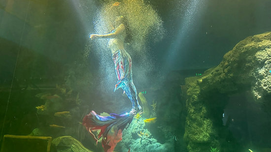 館內匯集了50余種全球珍稀海洋生物和近萬尾觀賞魚類,打造“海洋+極地+科技+文化”四位一體的沉浸式文旅體驗。八大特色生物展區包括體現襄陽本地特色的“漢水秘境”及充滿互動趣味的“海獸島嶼”“鰩魚海灣”等區域;三大演藝秀場“生命之源”“人魚劇場”“海獅劇場”則為游客奉上一場場視覺與聽覺的盛宴。