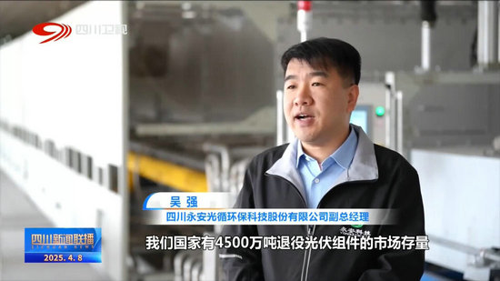 四川永安光循環保科技股份有限公司副總經理 吳強:我們國家有4500萬噸退役光伏組件的市場存量,每年還有1200萬噸的市場增量,是一個產業規模超千億元的“藍海市場”。我們也緊跟市場需求,今年以來,我們投入600萬元,用于生產設備的更新和智能化設備的購置,生產效率得到大幅提升。同時,我們將投資5000萬元的二期項目預計在2026年底可以投用,屆時,我們企業年處理退役光伏組件20萬噸,年產值將超過10億元以上。