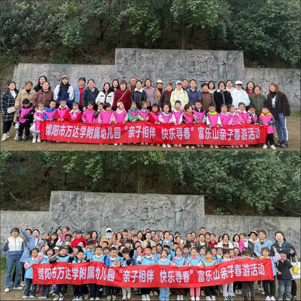 綿陽新聞網(wǎng)訊 為了幫助幼兒能夠親身體驗踏青,親近自然,開闊眼界,尋找自己的家鄉(xiāng)“富樂山”春天自然景觀,感受人與自然的和諧,在與同伴、家長、老師的互動、手工制作中體驗快樂,促進交往能力的發(fā)展。4月3日上午,游仙實驗幼兒園(綿陽市萬達學校附屬幼兒園)組織全園師幼及家長開展了以“親子相伴 快樂尋春”為主題的2025年春富樂山親子春游活動。