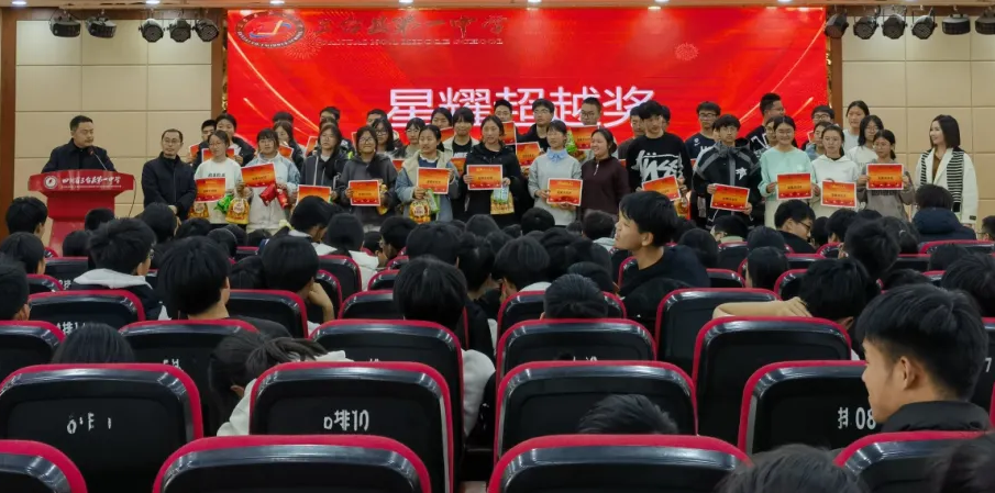 大會伊始,初中級部副主任景靖宣讀“星耀之星”“超越之星”獲獎名單。優秀學子們依次登上榮耀舞臺,接過承載拼搏印記、閃耀榮譽光芒的獎狀。他們中既有學科領跑者,也有逆襲黑馬,更有全能先鋒——每一份榮譽背后,是晨讀暮寫的堅守,是筆尖與星光的共鳴。
