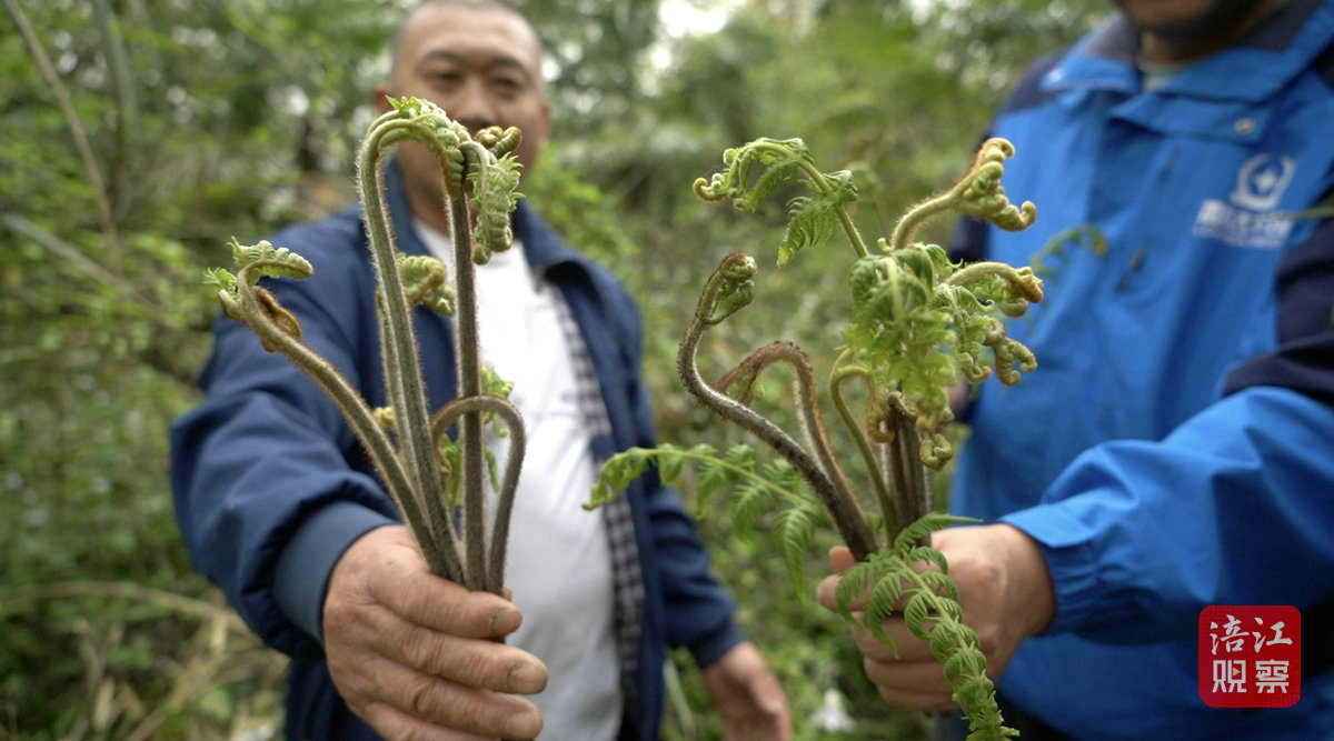 隨后,在工作人員的引導下,游客們開始了叢林尋味之旅。在采鮮區域,一顆顆鮮嫩的春筍、一叢叢翠綠的野菜映入眼簾。