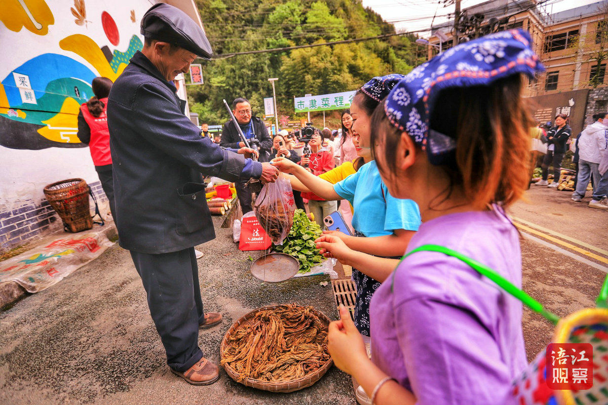 一大早,游客便絡繹不絕地涌入蝴蝶谷景區,他們或背著竹簍,或提著籃子,在山野集市來回穿梭,村民采摘的各式各樣的野菜讓他們挑花了眼,紛紛迫不及待地想體驗一把“打野”的樂趣。