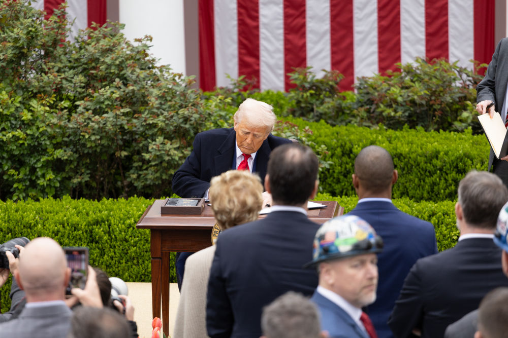 4月2日,美國總統特朗普在華盛頓白宮簽署關于所謂“對等關稅”的行政令。新華社記者胡友松攝