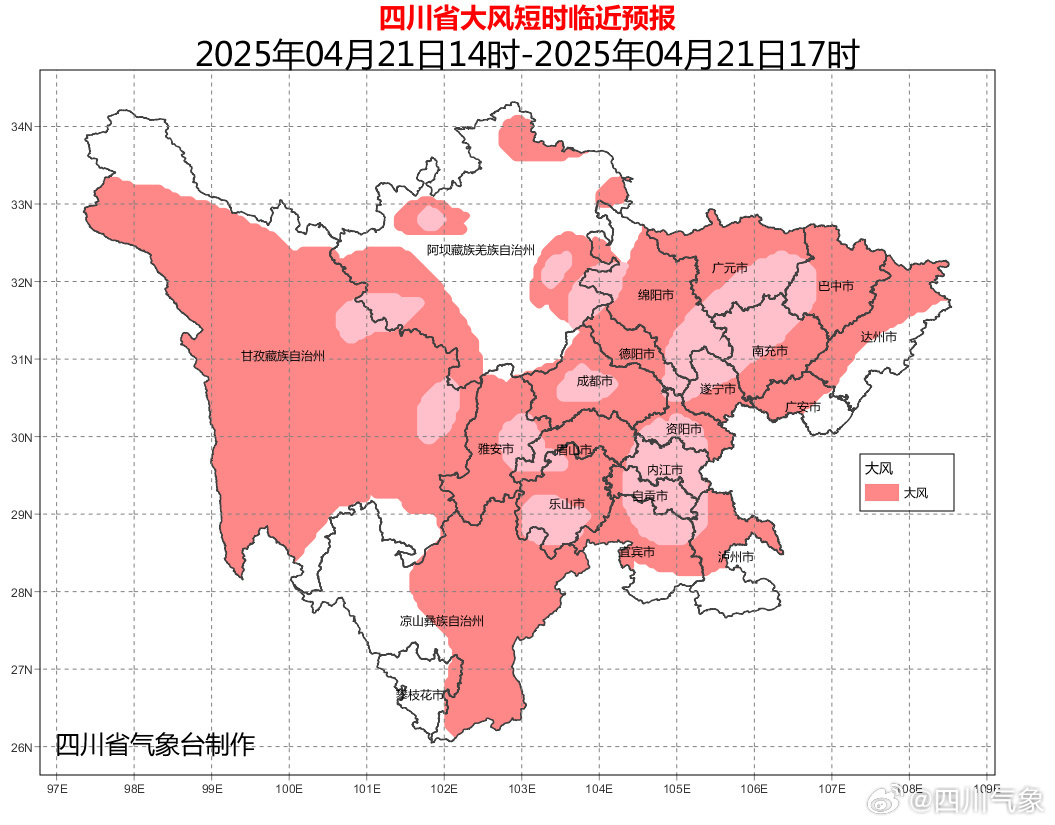 目前,四川省氣象臺4月20日16時發布的大風黃色預警仍在生效中。這段時間,朋友們要多關注氣象部門發布的短時臨近預報。比如,今天(4月21日)14時30分,四川省氣象臺就發布了大風和強對流短時臨近預報:預計未來3小時,盆地大部、甘孜州和阿壩州部分地方及涼山州中部東部有6~8級風,局部可達9~11級,期間部分地方將伴有雷電和短時強降水等強對流天氣。