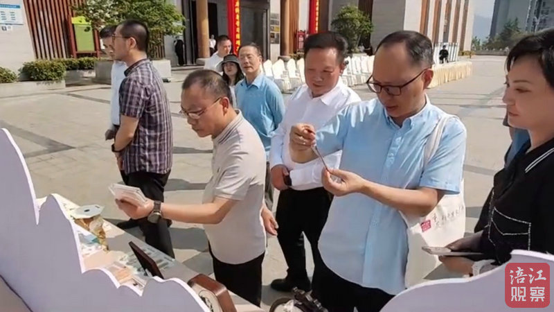 除了推送精品線路,江油、巫山兩地旅游文創產品展也成為發布儀式現場的亮點。來自江油的“李白詩意繡”團扇、折疊紙燈、Q版李白盲盒、詩詞主題書簽、“李白故里”折扇、小李白玩偶……精致可愛、妙趣橫生。