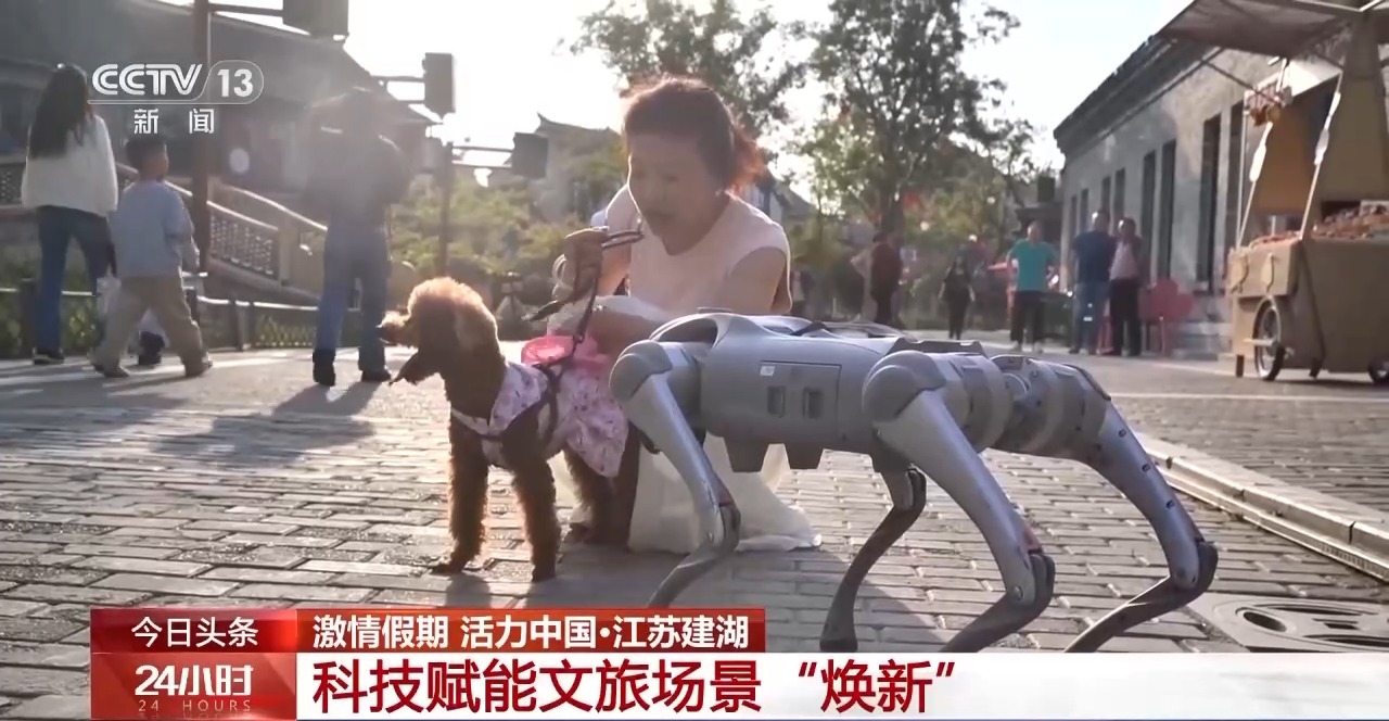 在景區里,游客不僅能邂逅智能機器人,還能偶遇智能機器狗穿梭在街頭巷尾,掃碼共享無人機航拍極速成片,戴上VR眼鏡暢享“穿越時空之旅”,打破傳統“走馬觀花”式游覽,為廣大游客提供更舒適、智慧、便捷的旅游體驗。