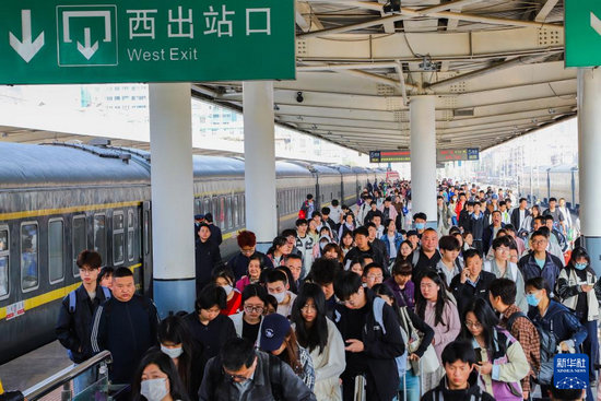 5月5日,旅客在蘭州站出站。新華社發(王光輝攝)