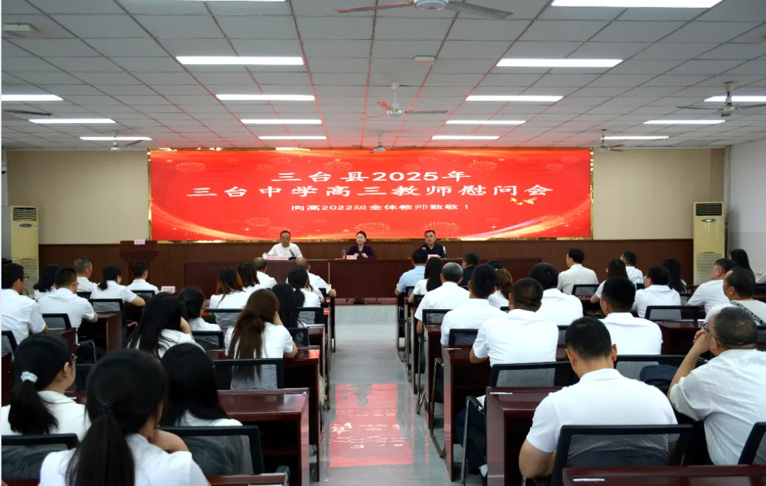 為了凝聚高三教師團隊?wèi)?zhàn)斗力,踐行以生為本、尊師重教的理念,4月28日,三臺縣縣委、縣政府、縣教體局領(lǐng)導(dǎo)一行赴三臺中學(xué),開展了以“溫情備考 決勝高考”為主題的高三教師暖心慰問活動。三臺縣委常委、宣傳部部長、縣委教育工委書記鐘蓓,縣委教育工委常務(wù)副書記、縣教體局黨組書記、局長嚴(yán)剛出席活動??h教體局黨組成員胡運軍主持會議。