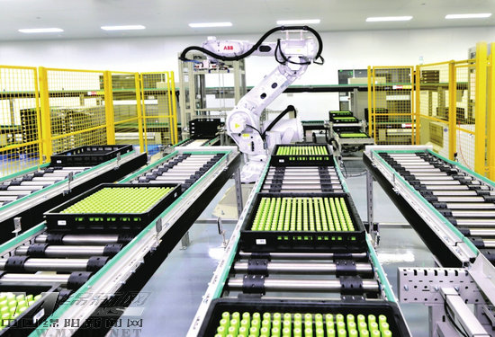 走進(jìn)長(zhǎng)虹杰創(chuàng)智能化生產(chǎn)車間,只見ABB機(jī)械臂不停揮舞,精準(zhǔn)抓取、上料,產(chǎn)線上的一塊塊鋰離子電池自動(dòng)傳輸、精準(zhǔn)下線,等待入庫(kù)打包。