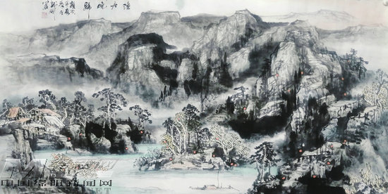 《漁舟晚歸》(國畫)