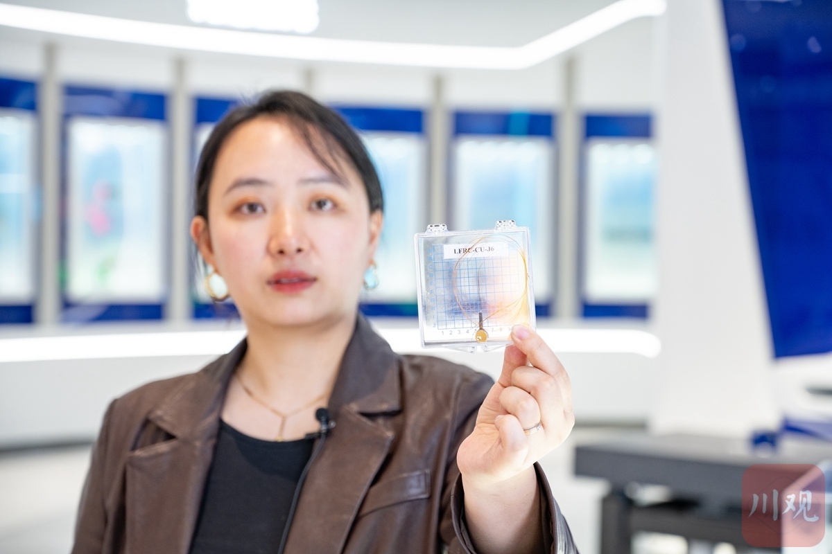 綿陽科技城光子技術研究院,工作人員手持的是一款抗磁型深低溫溫度傳感器,打破了國外壟斷,已在國內超導研發領域得到應用。 攝影/趙明