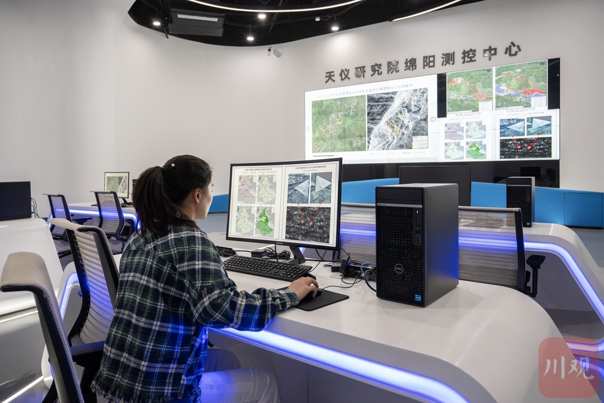 綿陽天儀空間科技有限公司內,工作人員正在通過衛星圖像進行地質監測。 攝影/趙明