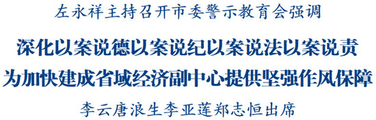 綿陽新聞網訊 5月15日,市委召開警示教育會,副省長、市委書記左永祥主持會議并講話。他強調,要深入學習貫徹習近平總書記關于加強黨的作風建設的重要論述和重要指示批示精神,全面落實黨中央和省委部署要求,深入落實中央八項規定精神,深化以案說德、以案說紀、以案說法、以案說責,教育引導全市黨員干部進一步提高拒腐防變免疫力、提振干事創業精氣神,為加快建成省域經濟副中心提供堅強作風保障。