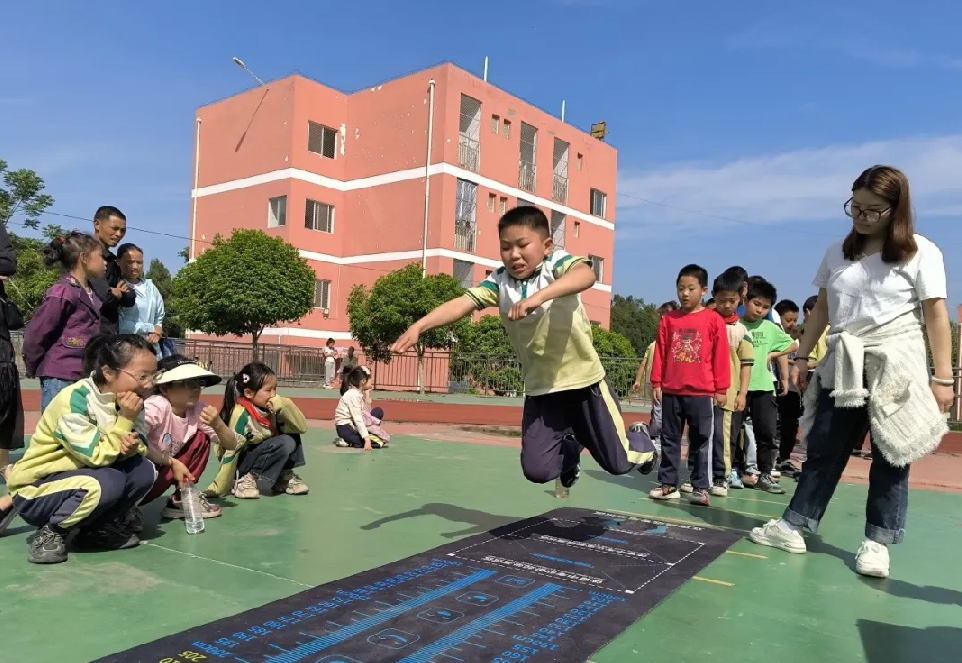 沙包擲遠項目中,小運動員們奮力一擲,沙包劃出優美的弧線;后拋實心球考驗著選手們的爆發力;立定跳遠場地,運動員們如矯健的羚羊騰空而起;一分鐘跳繩區域,彩繩飛舞,計數聲此起彼伏。