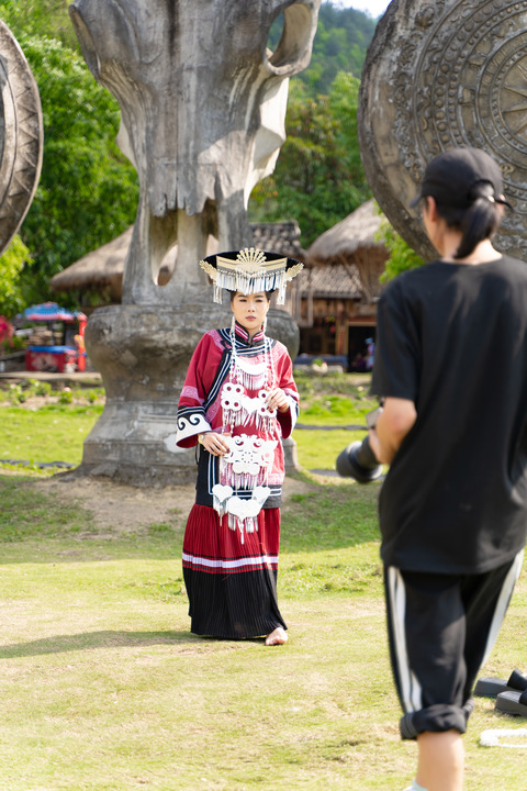 5月1日,游客在貴州省荔波縣瑤山古寨景區(qū)旅拍。新華社記者齊健 攝