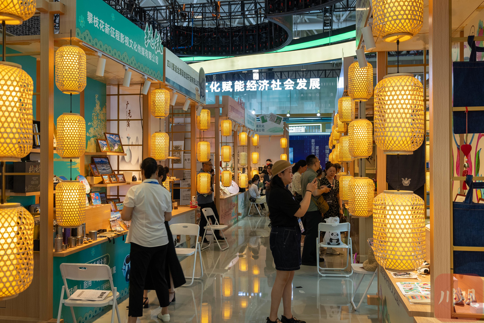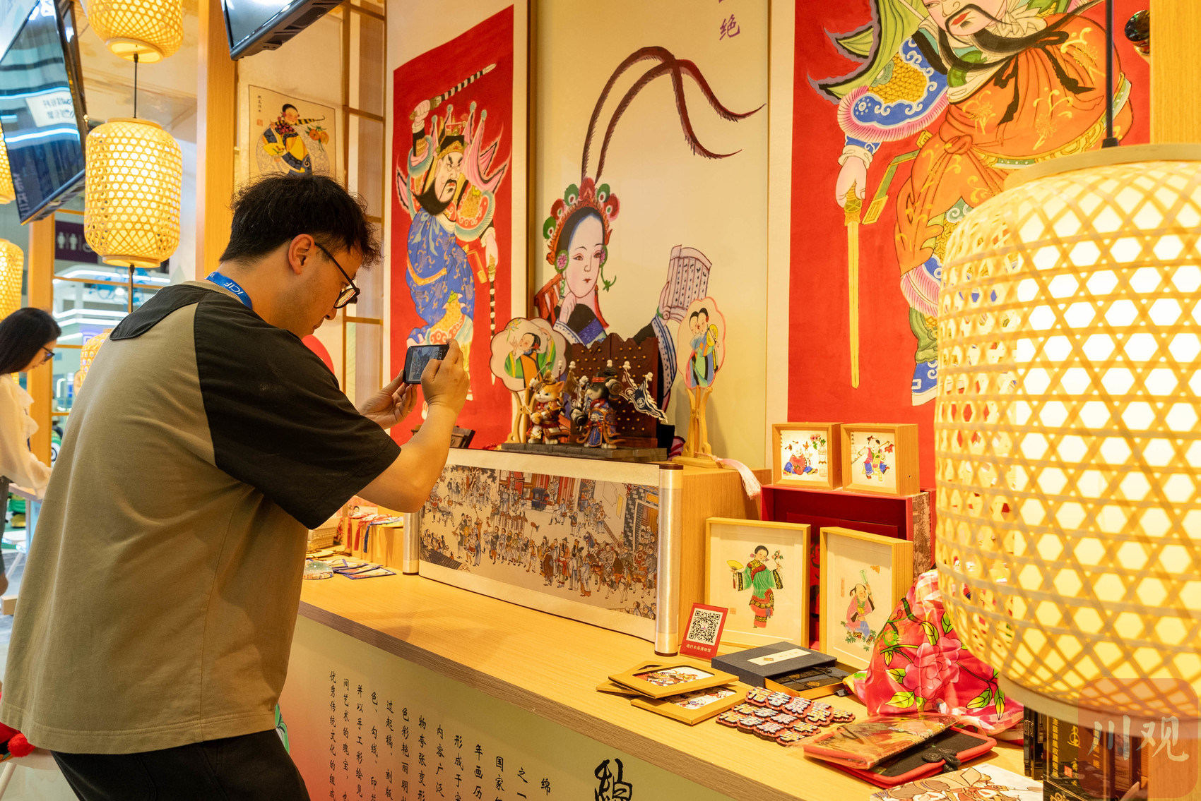 可逛可看可買,四川把“寬窄巷子”等地標也搬進了展館,打造出具有“煙火氣”的天府文創集市區:自貢彩燈擺件、三星堆盲盒、蜀繡團扇、大千文創、苗族扎染、東坡手辦、熊貓人偶等等不但吸引大批逛展觀眾,也讓觀眾從這些充滿國潮韻味的創意產品中感受“安逸四川”的無限魅力。