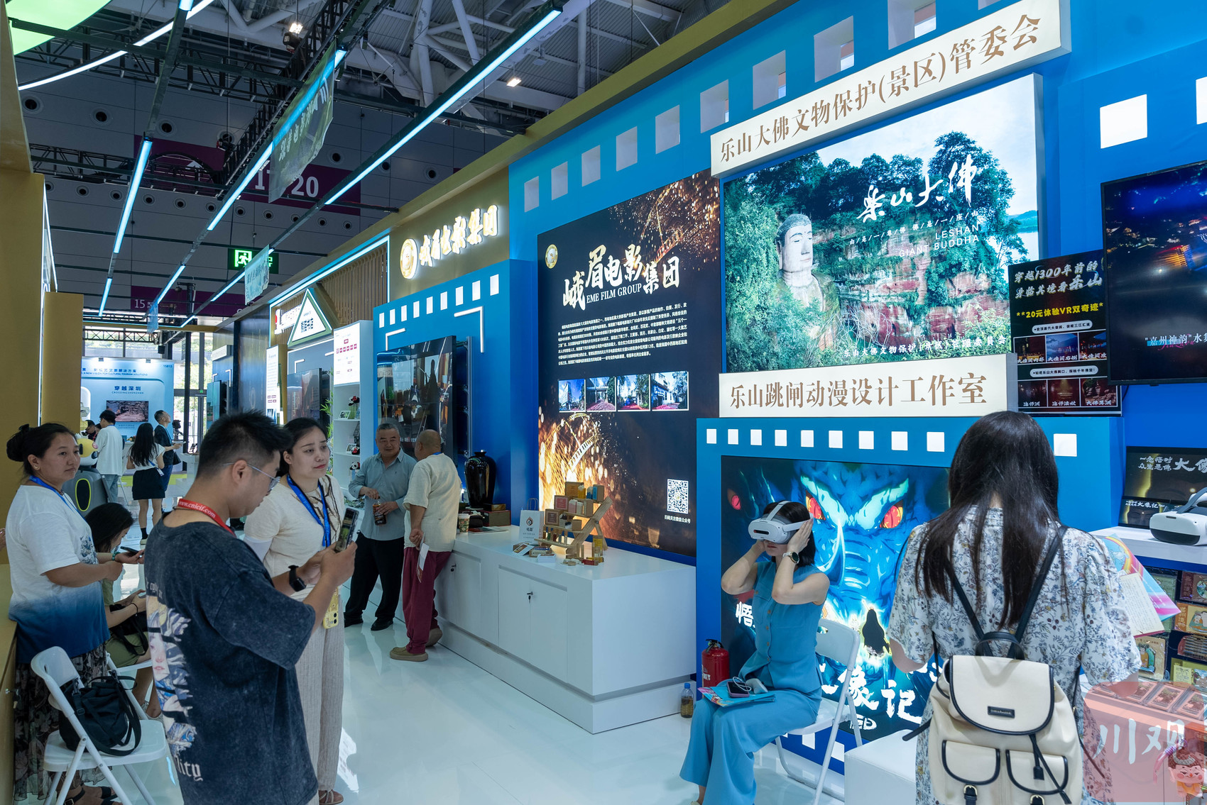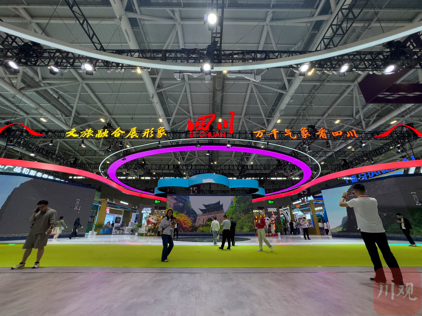 位于15號館的四川展館,聚焦“文旅融合展形象 萬千氣象看四川”主題,在總面積990平方米中打造多個沉浸式場景,分為重點場景展示區、文化和科技融合展示區、文化和旅游融合展示區和天府文創集市展示區四大區域,集聚全省73家重點文化企業,立體化呈現四川積極培育新型文化企業、發展新型文化業態、推動新型消費模式的新成果。