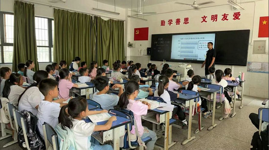 數學課上,蒲國忠老師執教四年級《平均數》一課,展現出了扎實的教學功底和獨特的教學魅力。在知識講解過程中,他注重啟發式教學,以生動有趣且層層遞進的方式引導學生逐步理解平均數這一重要概念,通過自主思考、小組討論等方式去發現平均數的意義。