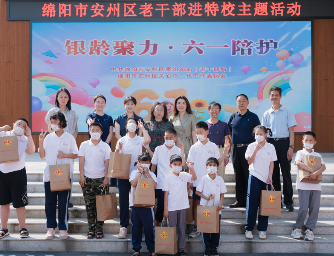 綿陽新聞網(wǎng)訊 5 月 20 日,在六一國際兒童節(jié)來臨之際,中共綿陽市安州區(qū)委組織部(老干部局)、安州區(qū)總工會、安州區(qū)關(guān)心下一代工作委員會深入安州區(qū)特殊教育學(xué)校,聯(lián)合開展了以“銀齡聚力,六一陪護(hù)”為主題的“六一”慰問活動。
